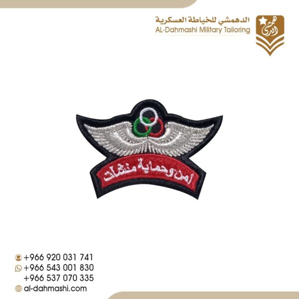 ونق امن وحماية منشات تطريز ابيض خلفية الكتابه احمر